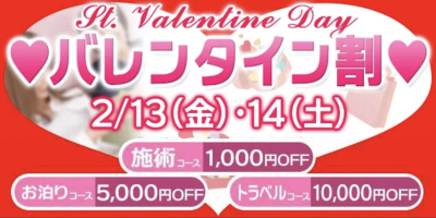 【告知】 バレンタイン🈹・ご新規様限定🈹が開催されます! 期間はバレンタイン割が2/13(金)2/14(土) ご新規様限定割が2/16(月)〜2/22(日)になります バレンタイン割の…