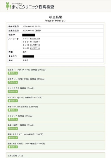 性病検査異常なしでした✨
