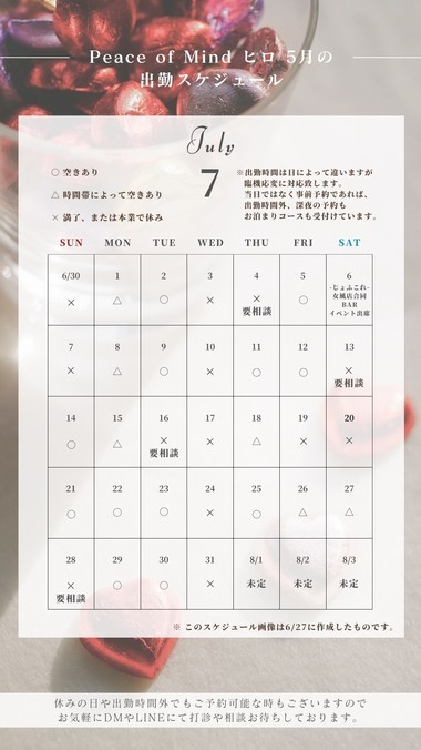 -7月の出勤スケジュール-