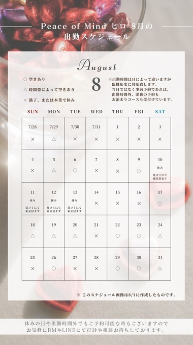 -8月の出勤スケジュール-