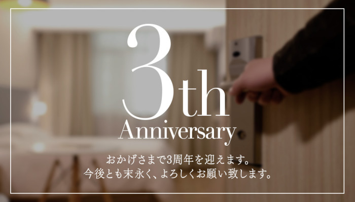 その他割引も併用可能です。ご予約時に「3周年割」のご申告下さい。