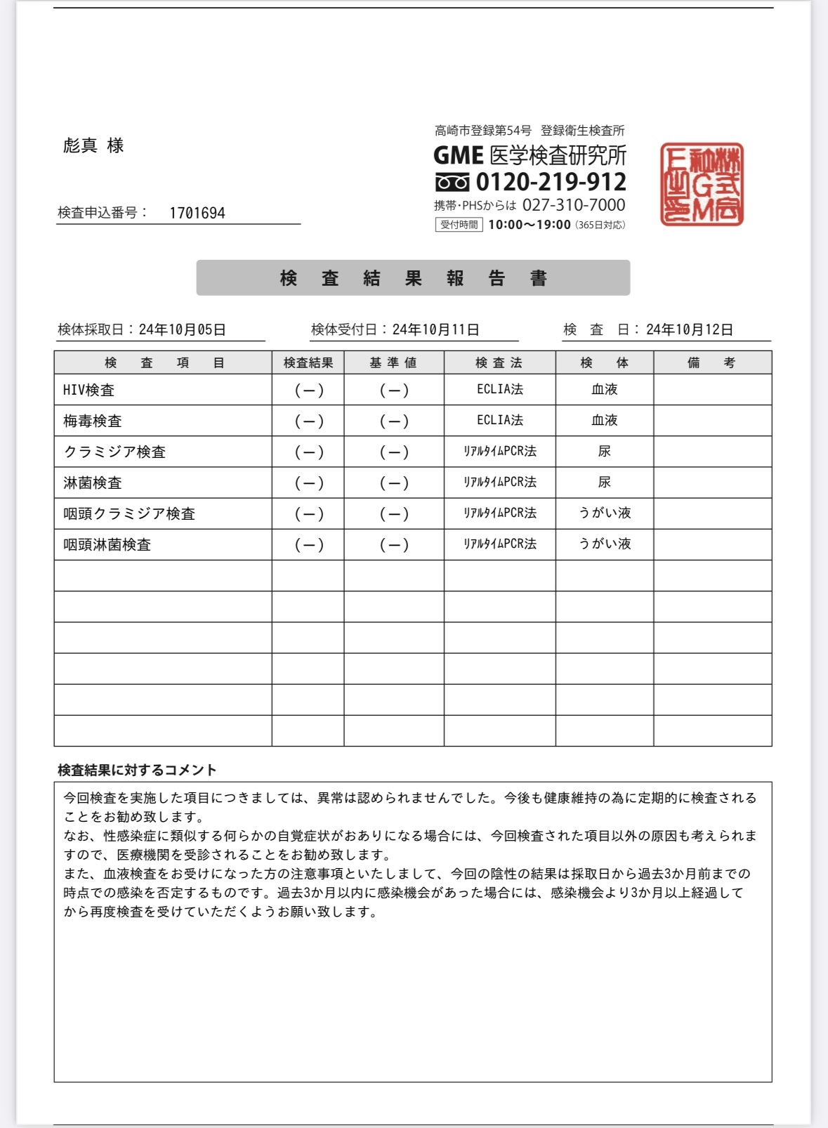 検査結果