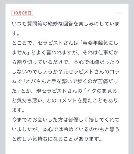 【セラピは仕事だから割り切ってるだけで本心は嫌だったりしないのでしょうか?】