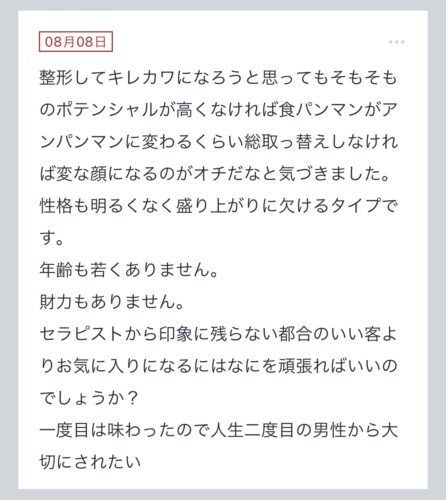 こんばんは〜!!拓也まんです! "拓也まんの!女風お悩み相談日記"のお時間です〜 kaikanセラピストランキング全国1位、セラピスト歴3年とそれなりにこの業界に携わらせて頂いてる拓…