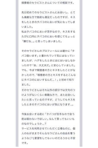 【喫煙者のセラピストさんについての相談です。】