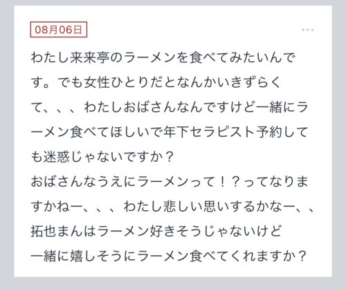 【ラーメン食べてほしいとかで年下セラピを予約しても迷惑じゃないですか?】