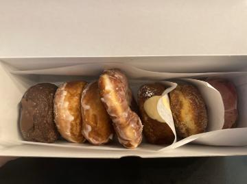 昨日のクイズの答えです!正解は…ドーナツでした!写真見たら一目瞭然…かな?真上から撮っちゃったのであんまりよく分からない?ミスドとは違ってめちゃくちゃモチモチした軽い食感!ドーナツで1個あたりは少しお…