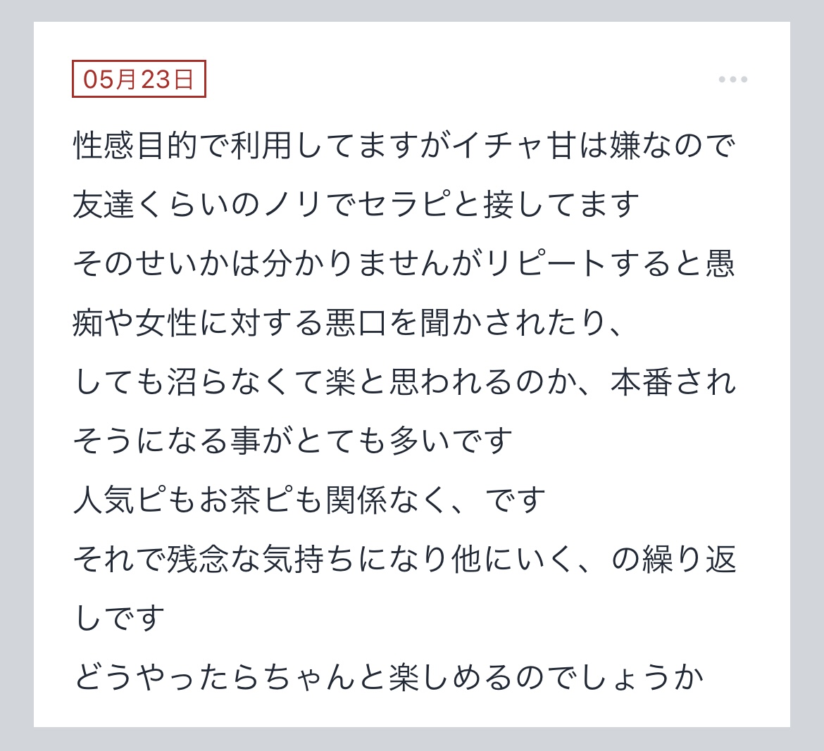 こんばんは〜!!拓也まんです!"拓也まんの!女風お悩み相談日記"のお時間です〜kaikanセラピストランキング全国1位、セラピスト歴3年とそれなりにこの業界に携わらせて頂いてる拓也まんがユーザーさんか…