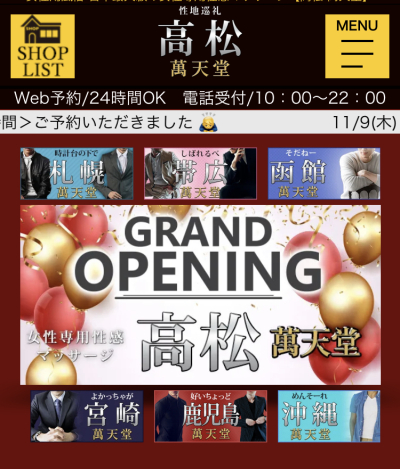 11月18日より高松萬天堂にて出勤いたします✨ 岡山広島高松三店舗在籍になりますがよろしくお願いします☺️