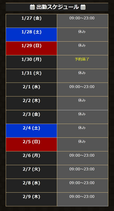 おはようございます、睦月です😊 寒波が来ていてさすがに寒いですね! 本日出勤しておりますので、宜しくお願いします! 今後の予定は今の所こんな感じになっております。…