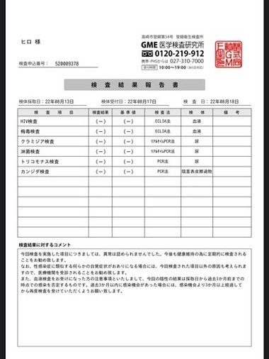こんにちは。焔です。性病検査の結果が出ましたのでご報告します。帝一周年に向けて一層店舗を盛り上げていきます!焔