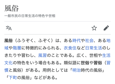 こんにちは☀️ 一休です🍵 気になった事は結構なんでも調べちゃう派です🥸 今更ですが“風俗”ってどういう意味なの、、、? …