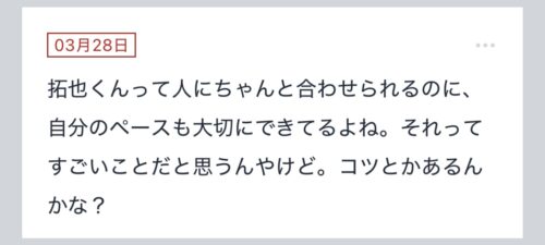 【拓也くんって人にちゃんと合わせられるのに、自分のペースも大切にできてるよね。】