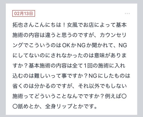 こんばんは〜!!拓也まんです! "拓也まんの!女風お悩み相談日記"のお時間です〜 kaikan、ぴゅあらばセラピストランキング全国1位、セラピスト歴5年目とそれなりにこの業界に携わ…