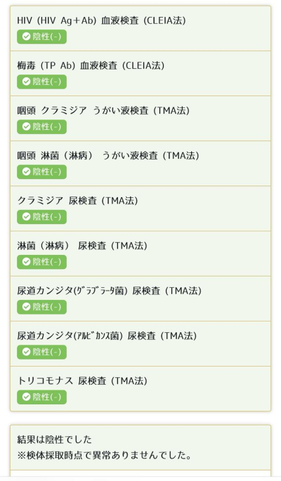 性病検査9項目全て陰性 7月の結果リンク貼ります。 (リンク期限あり、数ヶ月したら 見れなくなります。) ▶ https://smsg.jp/2nrUfZZktQ