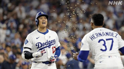 大谷選手はこの試合で5打数2安打3打点の活躍でした。ドジャースは先発のスネル投手が7回2失点、9奪三振と好投し、リリーフ陣が追い上げを許しましたが10対5で逃げきってフィリーズとの地区シリーズ進出に王手をかけました。
