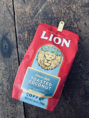 お湯を沸かし、用意するのは昔から愛飲しているライオンコーヒーのトーストココナッツ。
