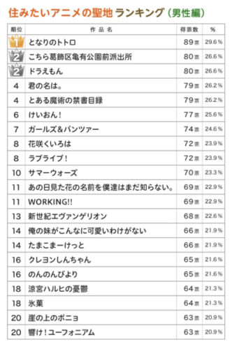 みんなが気になる住みたいアニメの聖地ランキングですね!!!笑