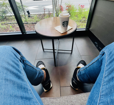 朝は桜を見ながらのんびりコーヒータイム☕️