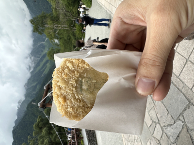 河童橋に因んで、 かっぱわさびコロッケ! カッパもチラリ! やっぱり旅は良いですね〜 次はひとり旅じゃなく