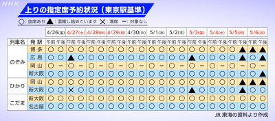 新幹線の「のぞみ」は4月26日からホームでの混雑緩和のため、自由席をなくし、すべての席が指定席となります。予約状況はどうなっているのでしょうか?