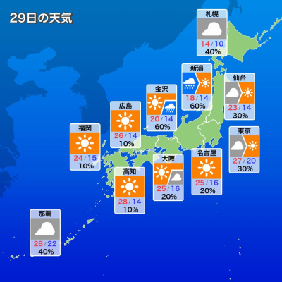 おはようございます 櫻井です^ ^ 昨日の大雨すごかったですね 5月29日 水曜日の今日は 低気圧や前線が本州から離れて 高気圧に覆われるよ 全国的に天気が回復して…