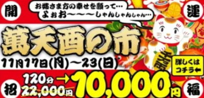 更新【萬天 酉の市】120分コース10,000円 残りスケジュール