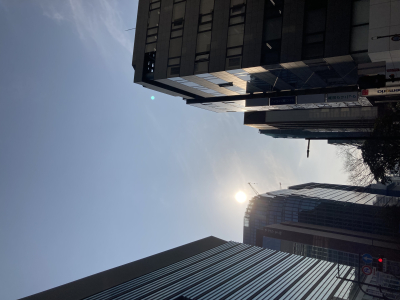 そして帰りにビルの谷間から差し込む陽の光がまたいい感じだったので写真を撮り