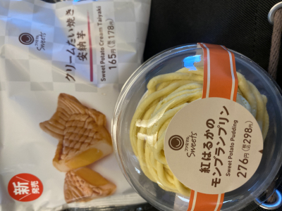 さつまいものモンブランプリンとたい焼き食べました😋