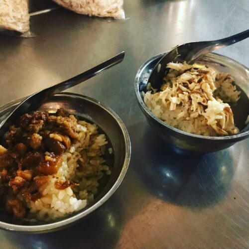 台湾はご飯がとても美味しい。胡椒餅はお店毎に味が違くて見つけるたびに食べた。写真はジーローハンとルーローハン。