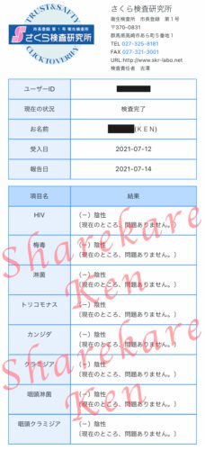 今月もオールクリアです。 安心してご利用ください。ご利用されるお客様も 定期的な検査をおススメすます♪お互い安心して楽しみましょう(*´꒳`*)==== お知らせ ====☆次回出勤について☆スケジュ…