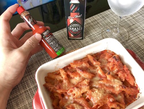 今朝はペンネのアラビアータをオーブンで焼いて食べました。そしてスコーピオンソースを数滴…。朝から辛い物を食べて刺激的な1日のスタートです!しかし、というか案の定…顔が滝汗状態になりましたのでアイスを食…