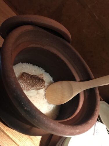 「こちら鯛飯でございます」って渡されたら皆さんこの後どうするかは流石に分かりますよね。そうです。上の鯛をご飯と均等に混ぜたり、お焦げも少々ってな具合に茶碗によそって食べたり、お茶漬けにしたり。想像する…