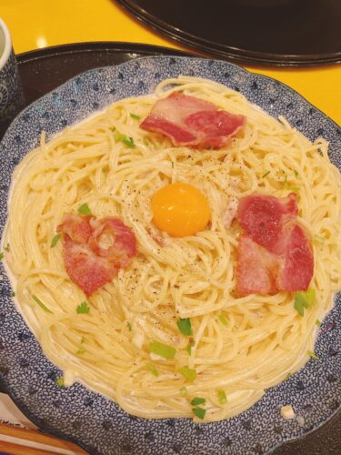 この間無性にパスタ食べたくなって五右衛門に行ってきました〜いつもは、トマト系なのに気分変えてカルボナーラにしてみたら美味しかった笑さすが五右衛門笑うまくて当然か笑