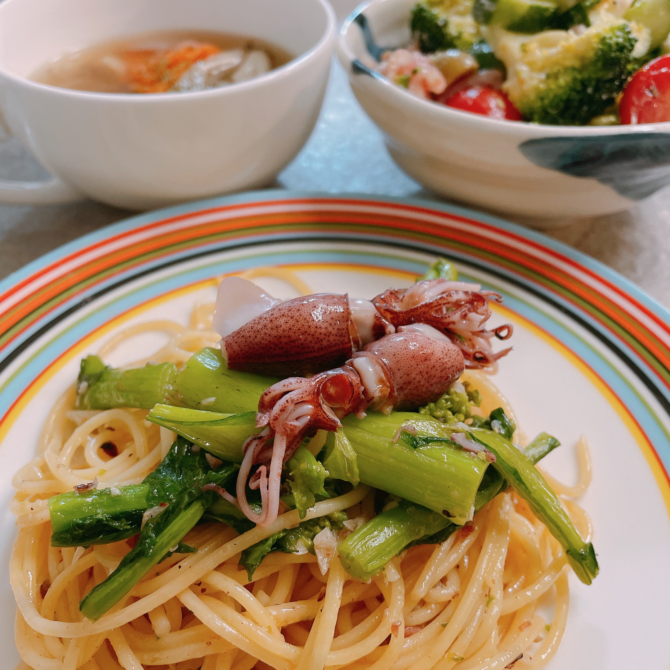 ↑菜の花のしらすのパスタはよく作るけど、ホタルイカバージョンは初めて