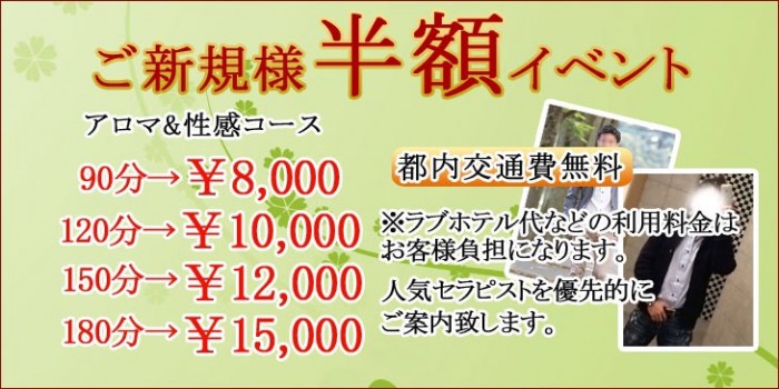 当店のご利用が初めてのお客様に是非大人の時間を知っていただきたいとの思いで半額イベントをさせていただきます