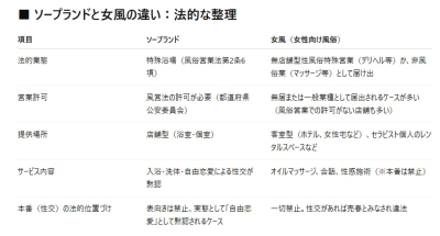 ソープと女風では、営業許可・サービス内容・法的リスクがまったく異なるので、抜け道はないと思って方が良いです。
