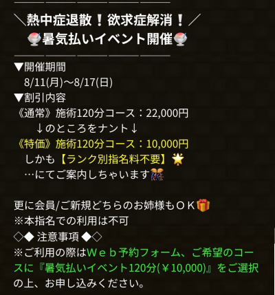 施術120分コースが1万円という
