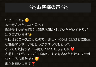 90分コースの施術も大歓迎ですので