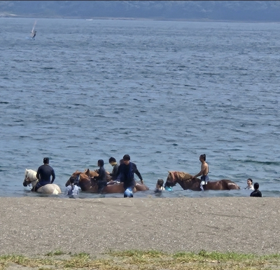 こうも暑いと、馬だって海に入りたくなるみたい💦