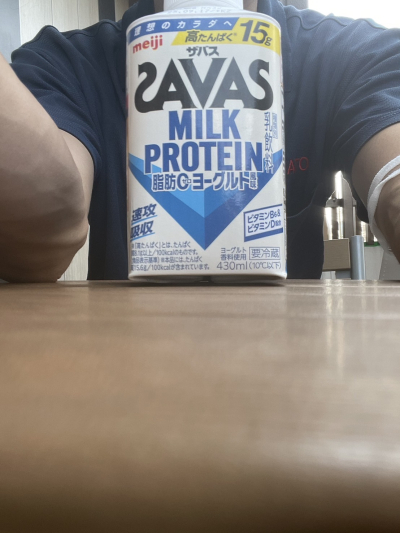 おにぎりかじって、プロテイン飲んで、よし!いこう!