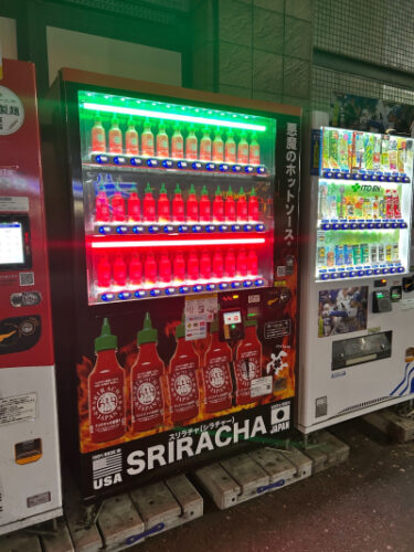 先日、仕事終わりにたまたま降りた溝の口駅で見つけた激辛ソースの自動販売機、気になるビジュアルですよね!!真っ赤で一際目立つたたずまいでした。