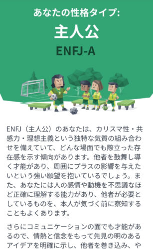最近の自分はどうかな…と思って、改めて受けてみました👀結果は変わらず 主人公(ENFJ-A) でした✨