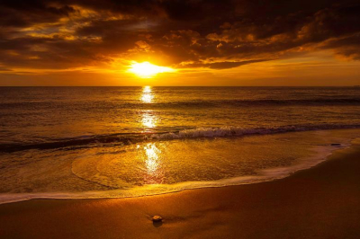 夕日の光が蜃気楼のように揺れていた