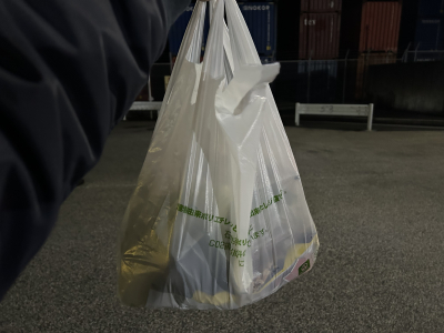僕の左手にある…そう!まいばすけっとの袋!