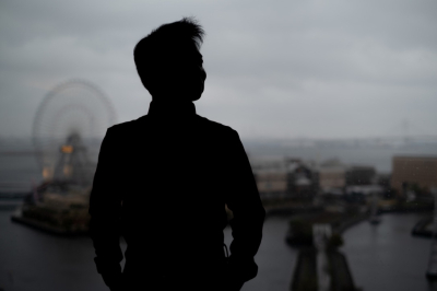 ショーウィンドーに映る自分を見て