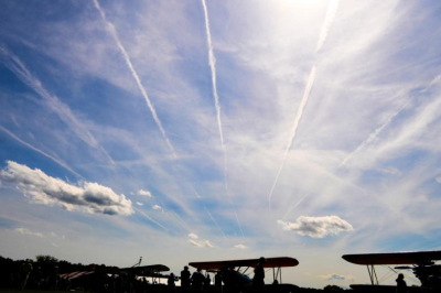 飛行機雲の合図心の中で揺らぐ落ち葉