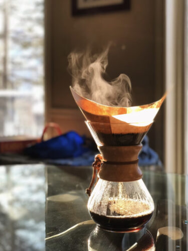 朝の寒さに、