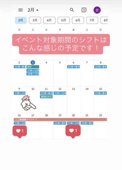 2月のイベントスケジュールが公開されました!