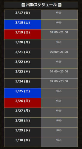 中々、出勤スケジュールを決められていないのですが